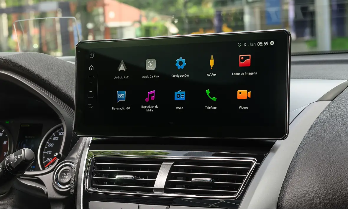 - Novo multimídia de 12” com GPS Offline e conexão Apple CarPlay e Android Auto sem fio